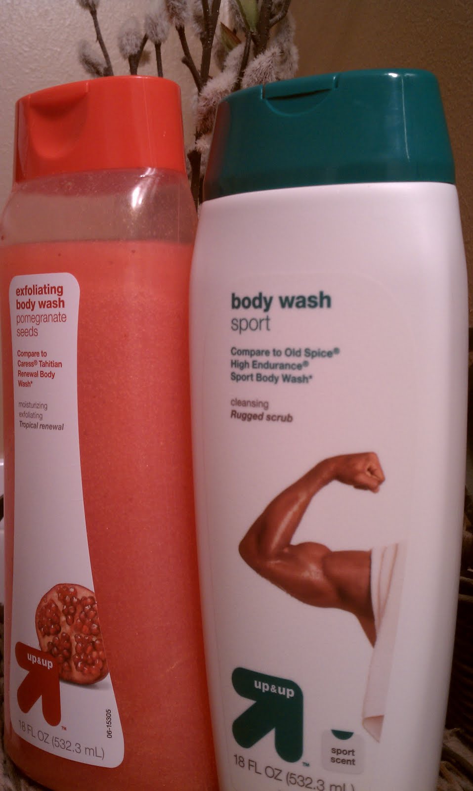 Body wash and a luffa. I don't get how people feel clean without a luffa. Lathering up with this little sponge produces wonderful bubbles that help me feel great! I generally use the Target Up & Up brand of body wash as well.